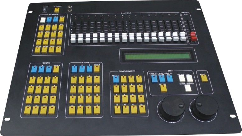 16个通道推杆,1个速度控制推杆,2个数据轮控制16Bit的Tilt/Pan。
