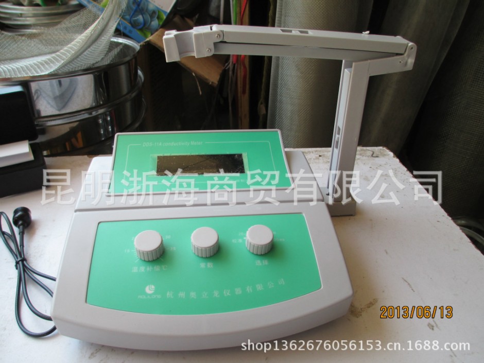 该机是数字显示精密台式电导率仪,用于精密测量各种介质电导率,当配以0.1、0.01常数的电导电极时,能精确测量高纯水电导率。