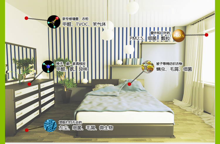 - 功能: 除甲醛 除烟除尘 杀菌 加氧
