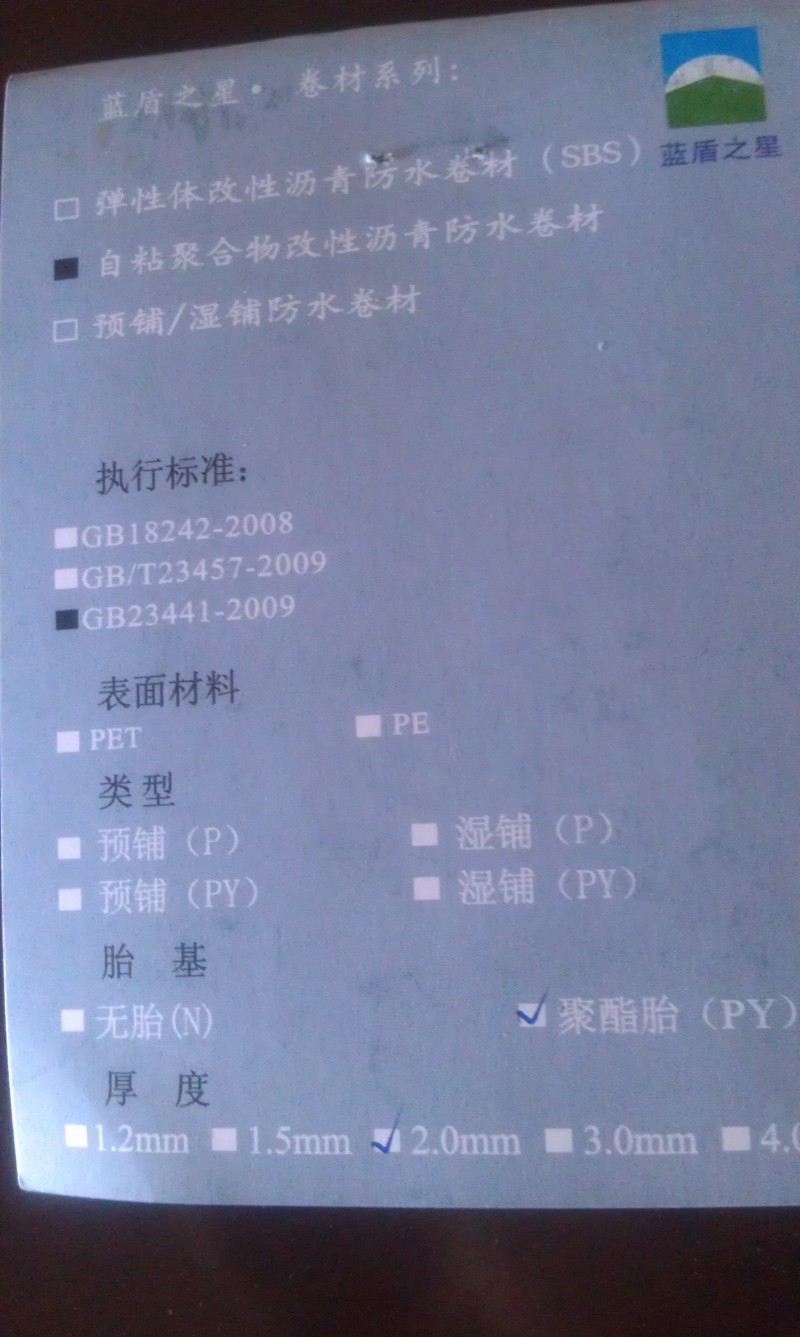 自粘聚合物改性沥青防水卷材是近年来国内新型的防水卷材,是以聚合物改性沥青为基料,以PE膜、PET膜为面料,以聚酯胎为胎体加工而成的自粘防水卷材。(2) 产品特点