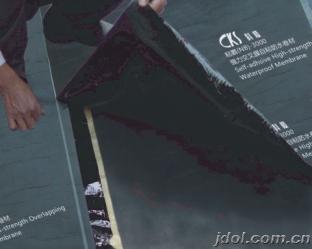 膜与优质的高聚物自粘橡胶沥青经特殊工艺复合而成的高性能、冷施工的自粘复合膜防水卷材,具有
